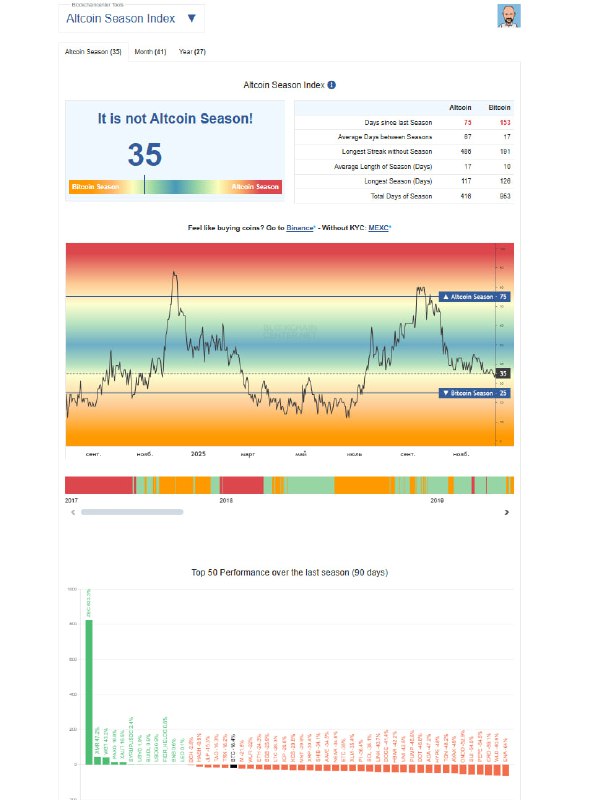 - Current Altcoin Season Index: 35