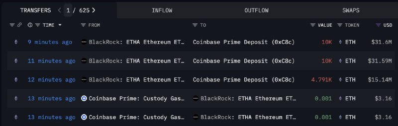 - A wallet attributed to BlackRock transferred 24,791 ETH to Coinbase Prime.