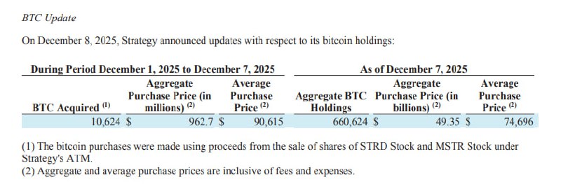 - Average purchase price (Dec 1–7): $90,615 per BTC