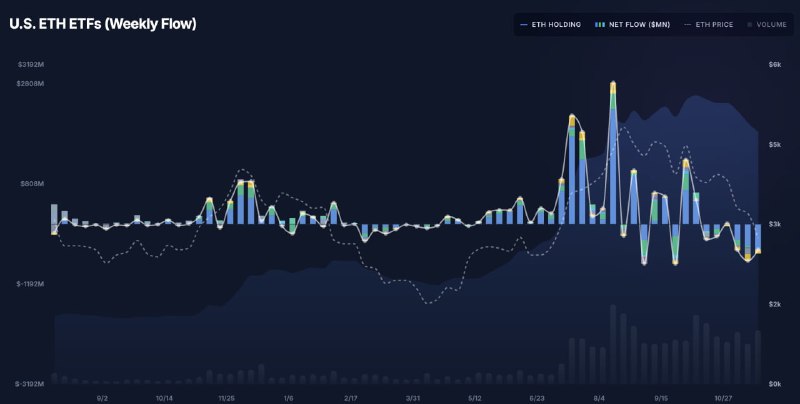 With weekly volumes still strong at $12 billion, investor engagement in spot Ethereum ETFs remains elevated. Flows may continue to oscillate as market participants recalibrate exposure amid price consolidation and shifting risk appetite.